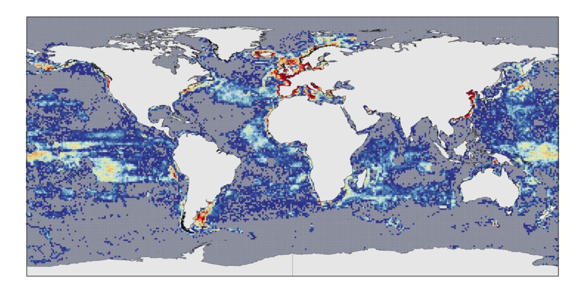 Over the past year GSMP has been analysing Automatic Identification System (AIS) data of the movements of individual fishing vessels (see global map for 2014). Satellite AIS was developed as a vessel safety and ship-to-ship anti-collision system with global coverage rather than to track fishing vessels for management purposes. But the global coverage of tens of thousands of vessels means fishing effort globally at relatively fine scale can be mapped. Data were purchased from a satellite provider and will enable us to identify where shark hotspots in the ocean are most overlapped by fishing vessel hotspots.
